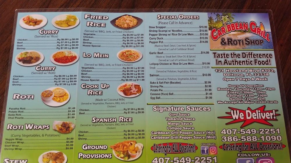 Welcome to Caribbean Grill & Roti Shop, your go-to destination for authentic West Indian, Carib-American, and Modern Mediterranean cuisine in Deltona! As a family-owned business, we take pride in offering dishes that celebrate flavor, culture, and diversity—all in a warm and inviting atmosphere. Whether you’re dining in, picking up takeout, or enjoying our convenient delivery service, our extensive menu caters to every taste with vegetarian options and halal dishes. Join us for lunch or dinner and discover why we are the melting pot of food that everyone loves. Experience a taste of the Caribbean today!